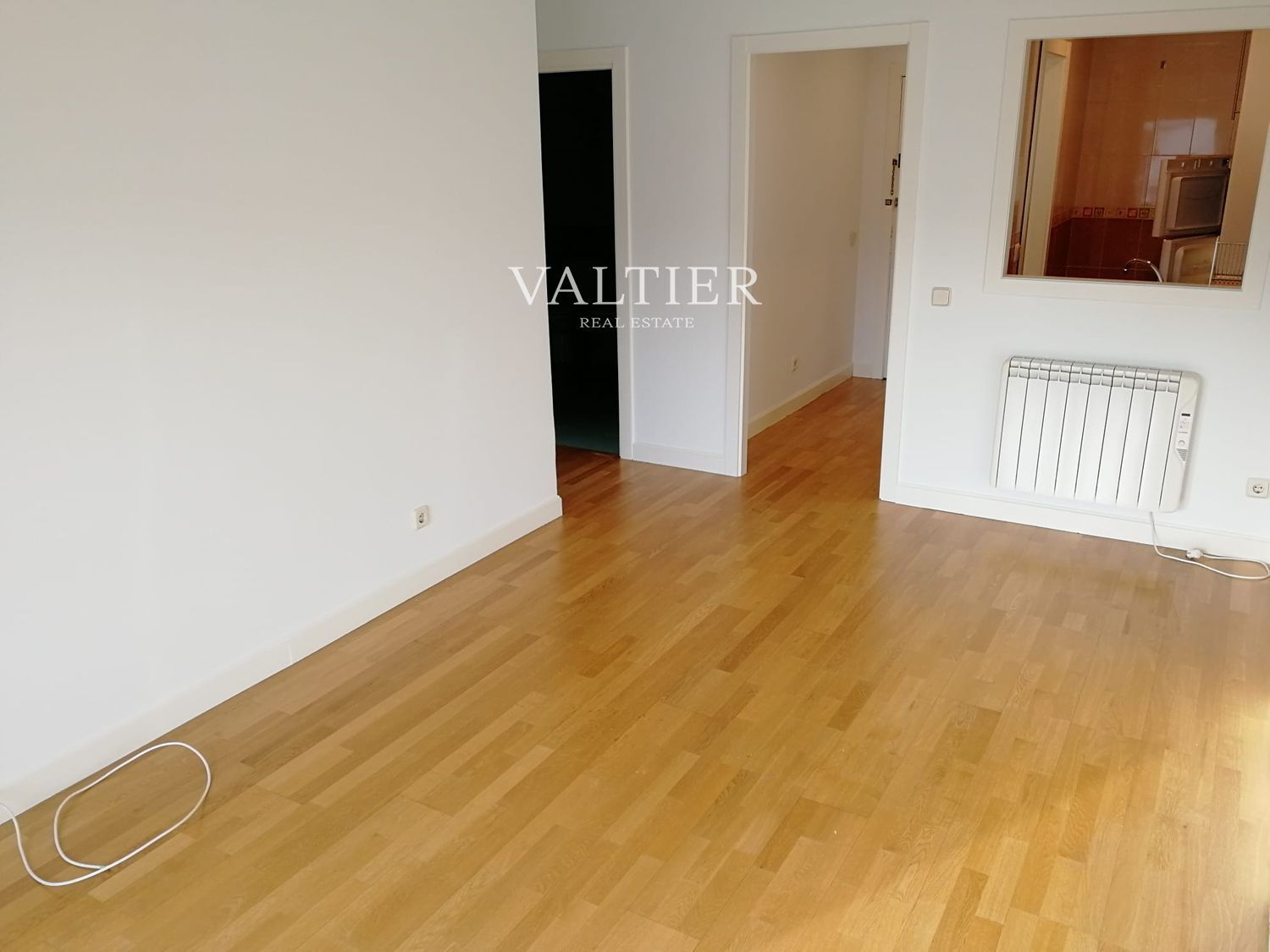 La vivienda, recién pintada y sin amueblar, se compone de un salón con cocina americana equipada, dormitorio amplio con armarios empotrados y baño completo de gran tamaño. Su orientación este y su altura garantizan abundante luz natural durante todo el día.