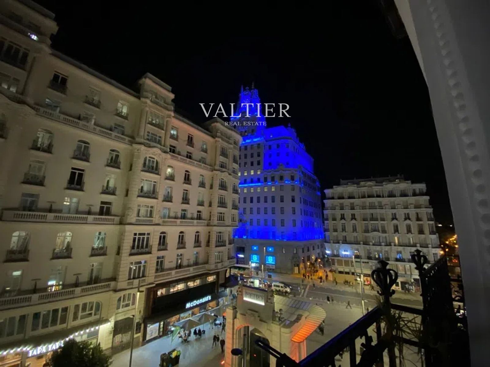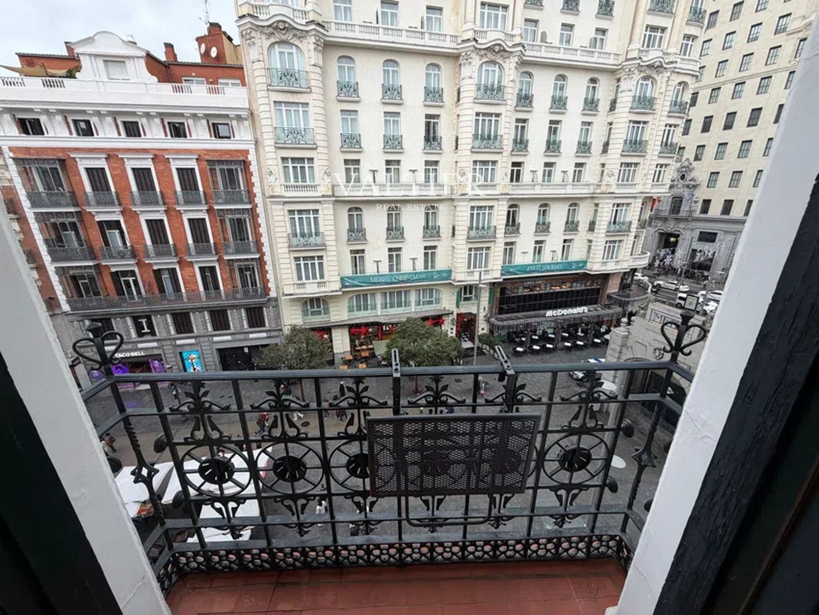 Dos balcones exteriores a Calle Montera, con vistas al entorno de Gran Vía