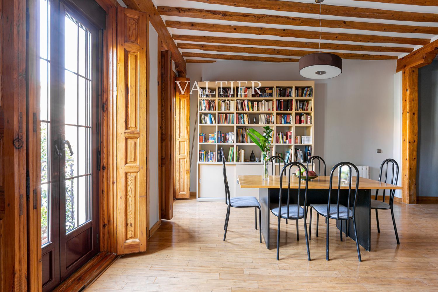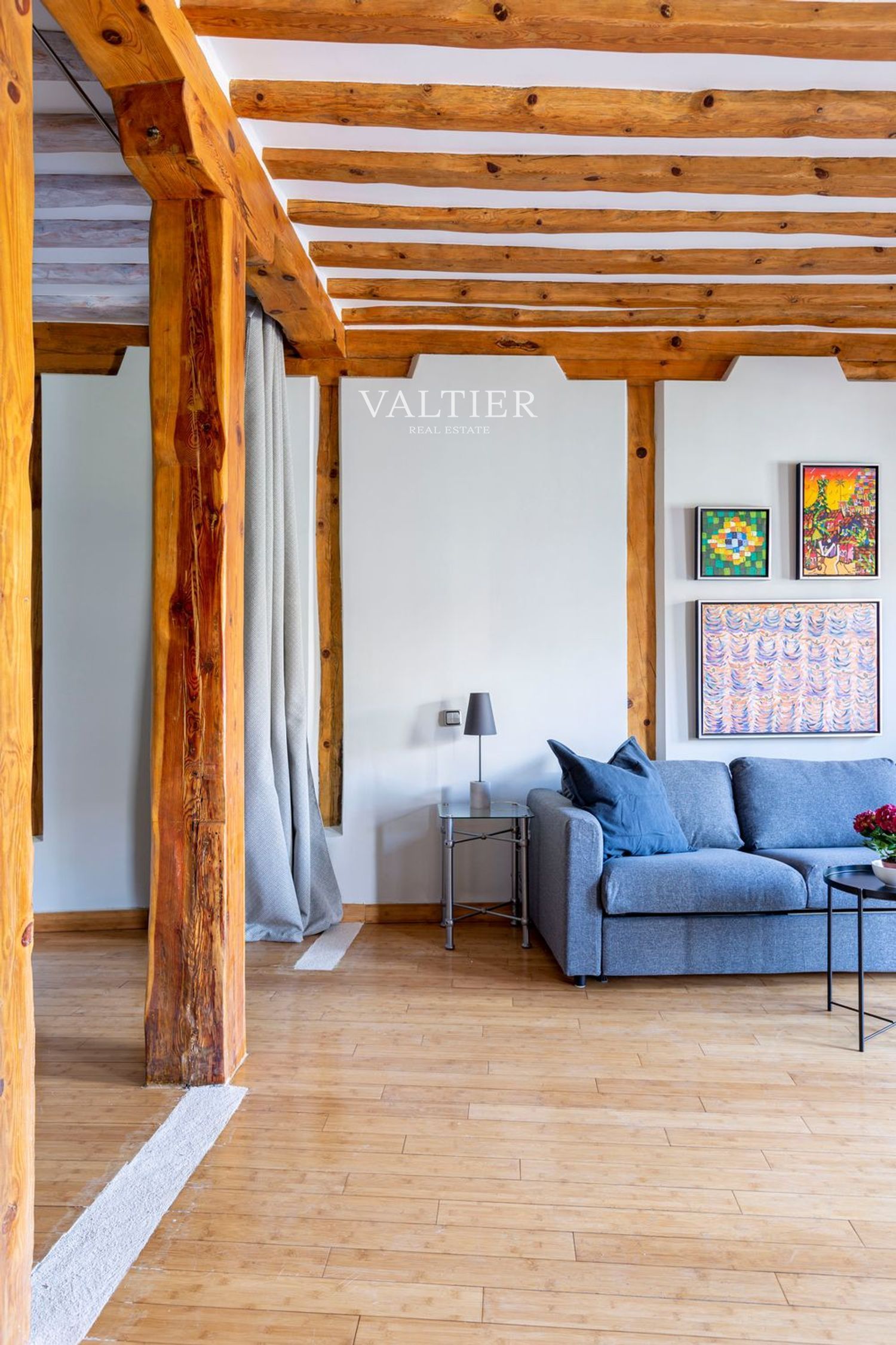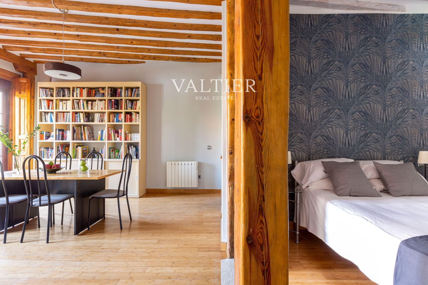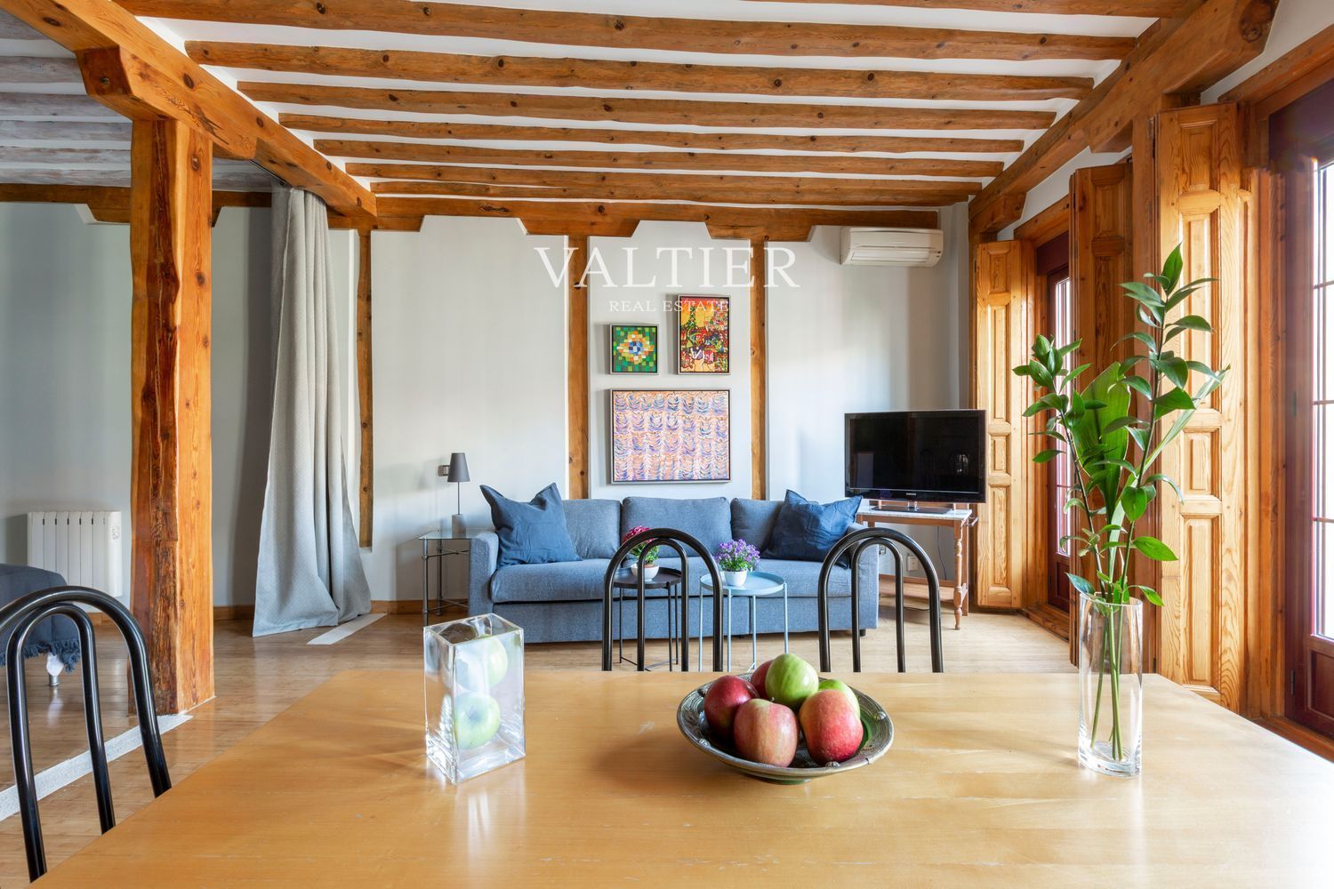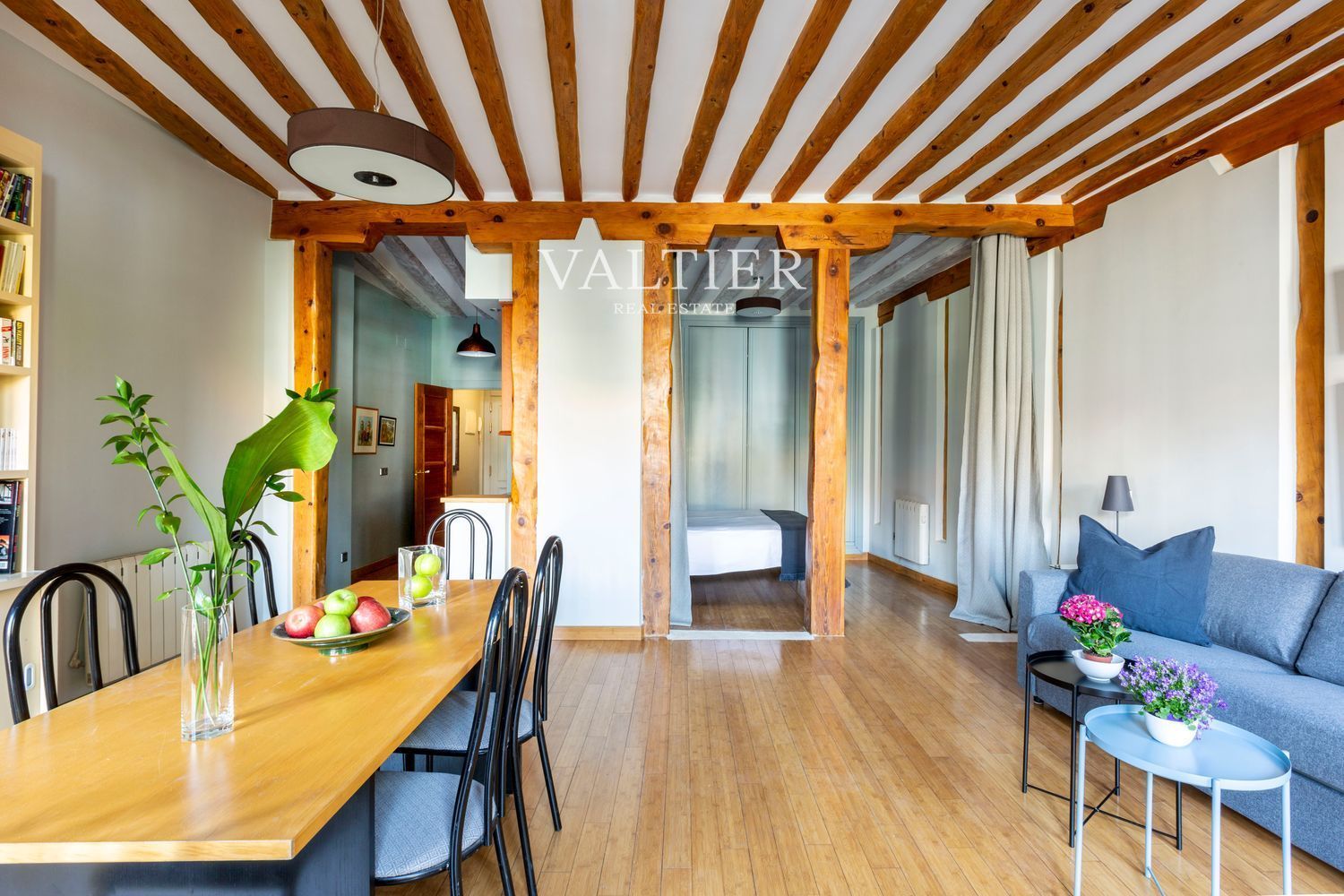El edificio fue rehabilitado integralmente en 2004, combinando modernidad con elementos originales como vigas vistas. Sus muros gruesos proporcionan un excelente aislamiento acústico. Aunque dispone de ascensor, el acceso es cómodo al tratarse de una primera planta.
