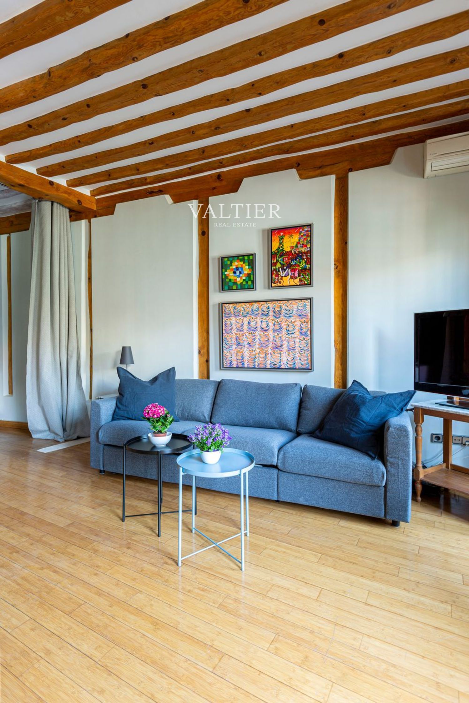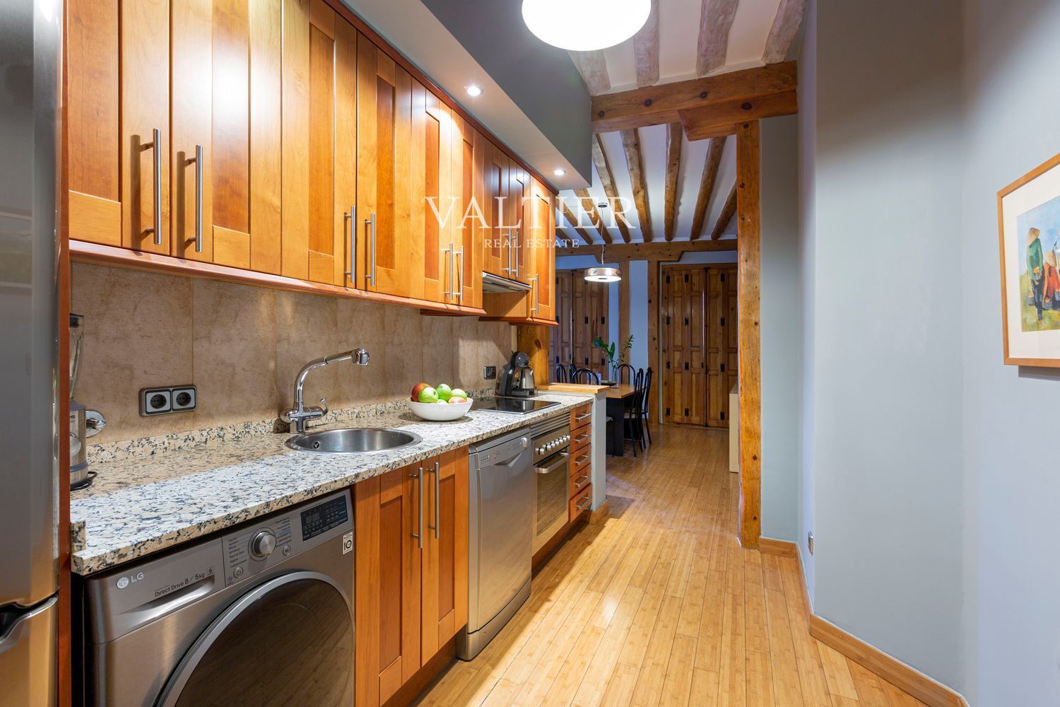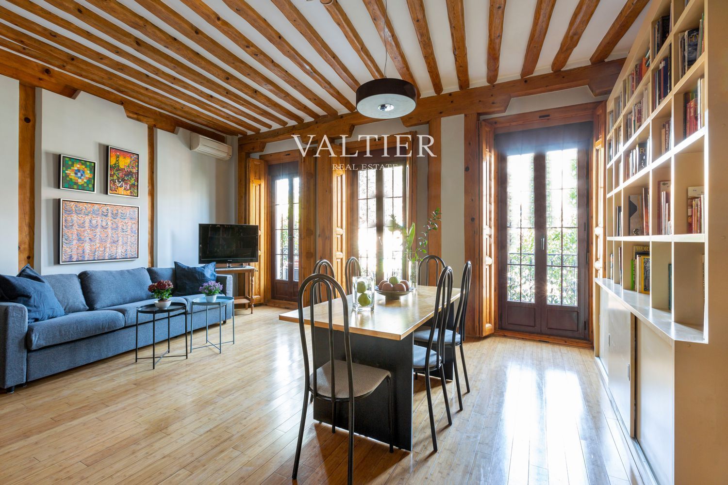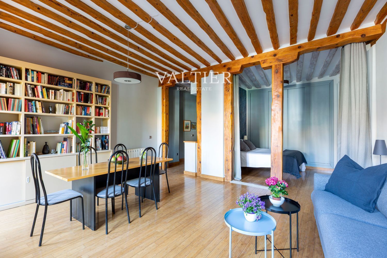 El edificio fue rehabilitado integralmente en 2004, combinando modernidad con elementos originales como vigas vistas. Sus muros gruesos proporcionan un excelente aislamiento acústico. Aunque dispone de ascensor, el acceso es cómodo al tratarse de una primera planta.