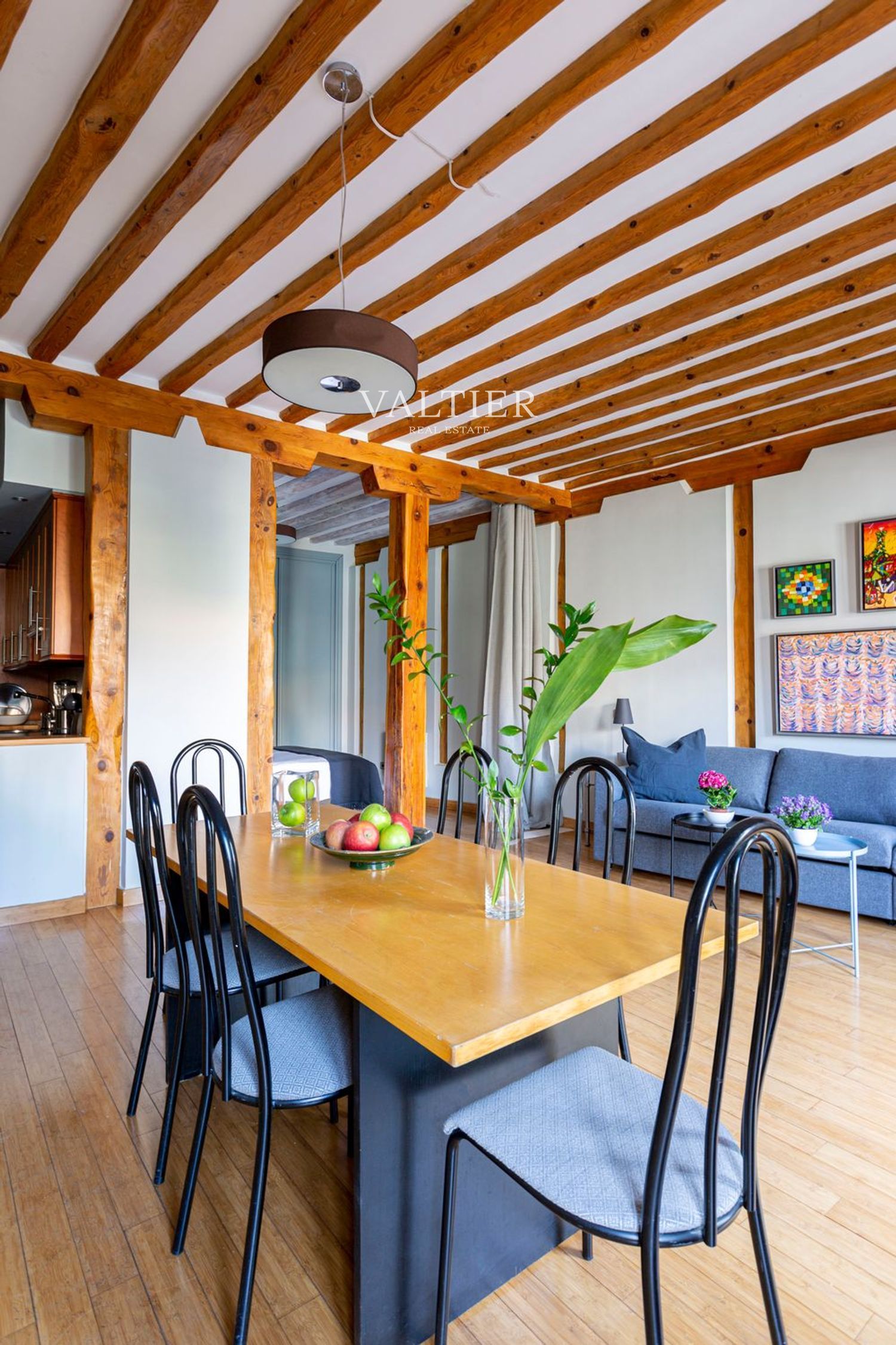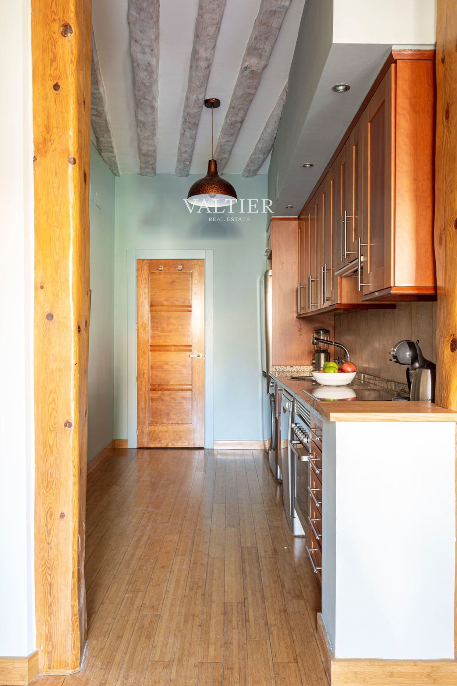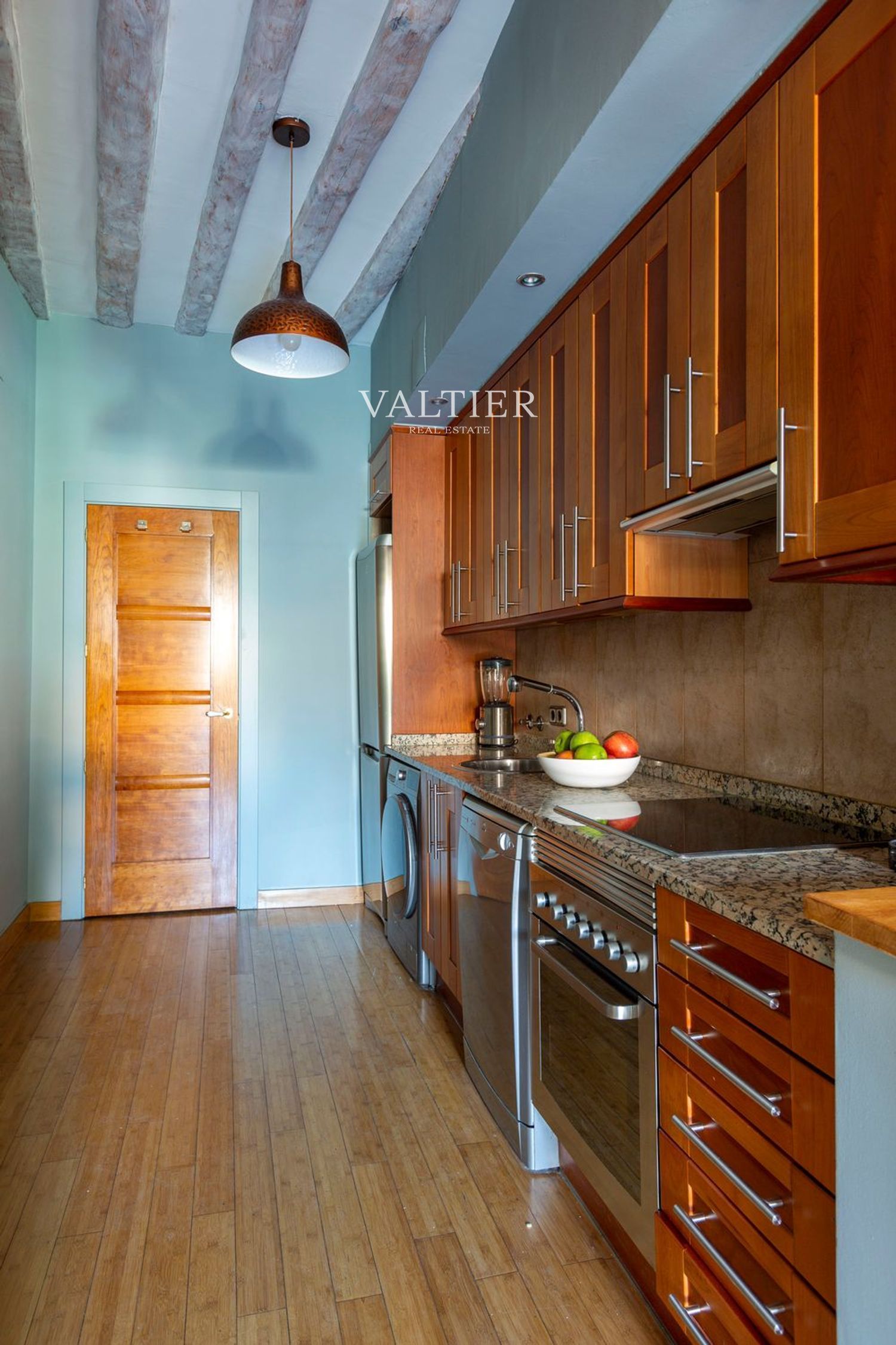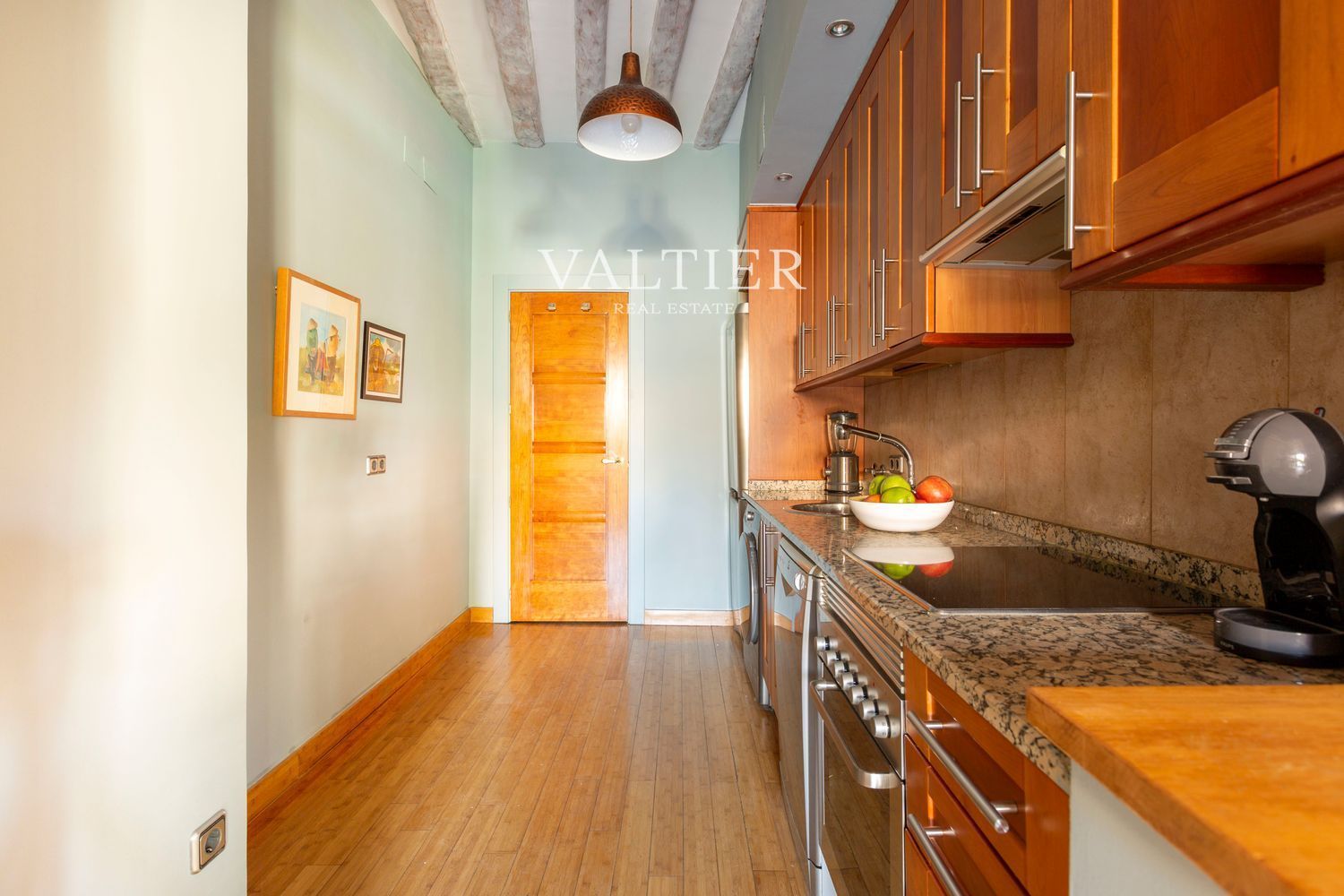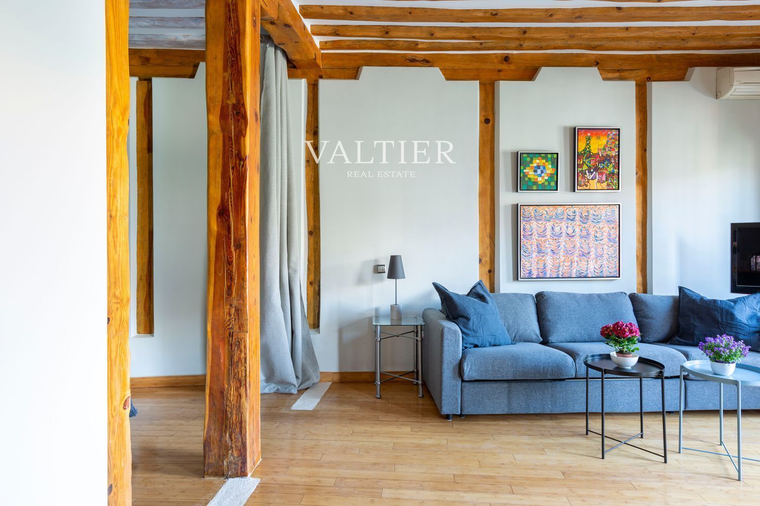 El edificio fue rehabilitado integralmente en 2004, combinando modernidad con elementos originales como vigas vistas. Sus muros gruesos proporcionan un excelente aislamiento acústico. Aunque dispone de ascensor, el acceso es cómodo al tratarse de una primera planta.