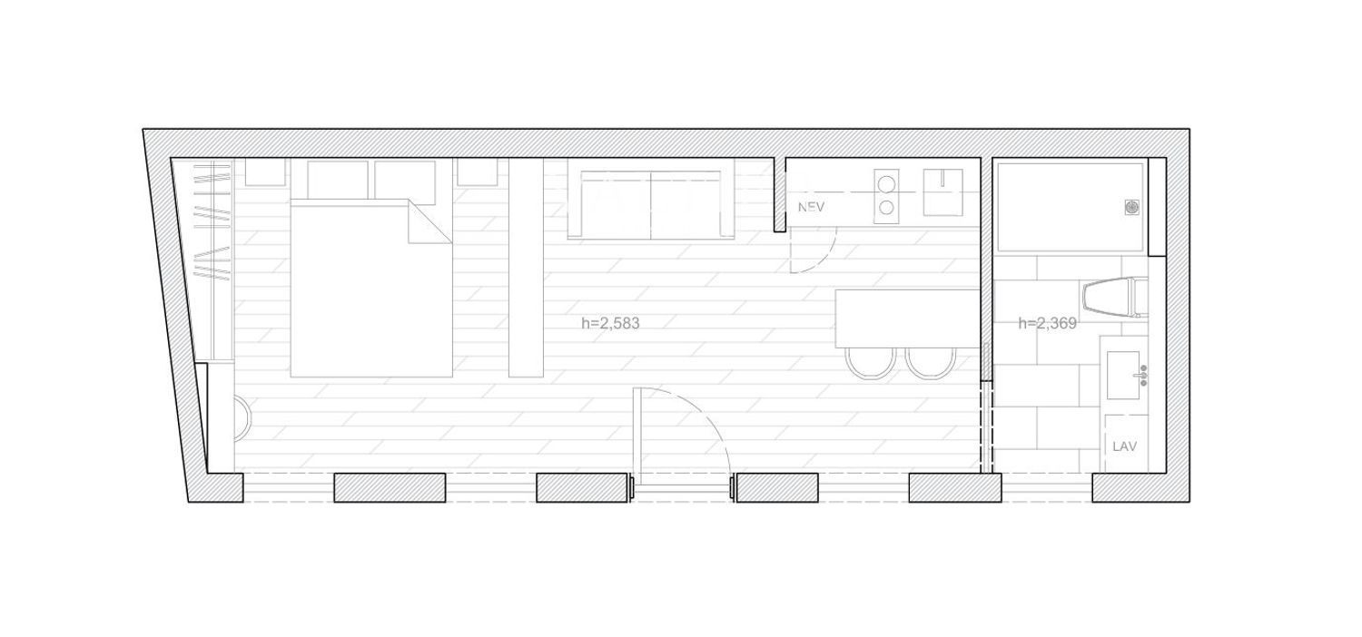 La vivienda cuenta con una distribución muy aprovechada, sin pasillos, con armarios empotrados y un espacio cómodo que integra la zona de descanso y estar. Dispone de cocina y baño completamente reformados con acabados actuales.