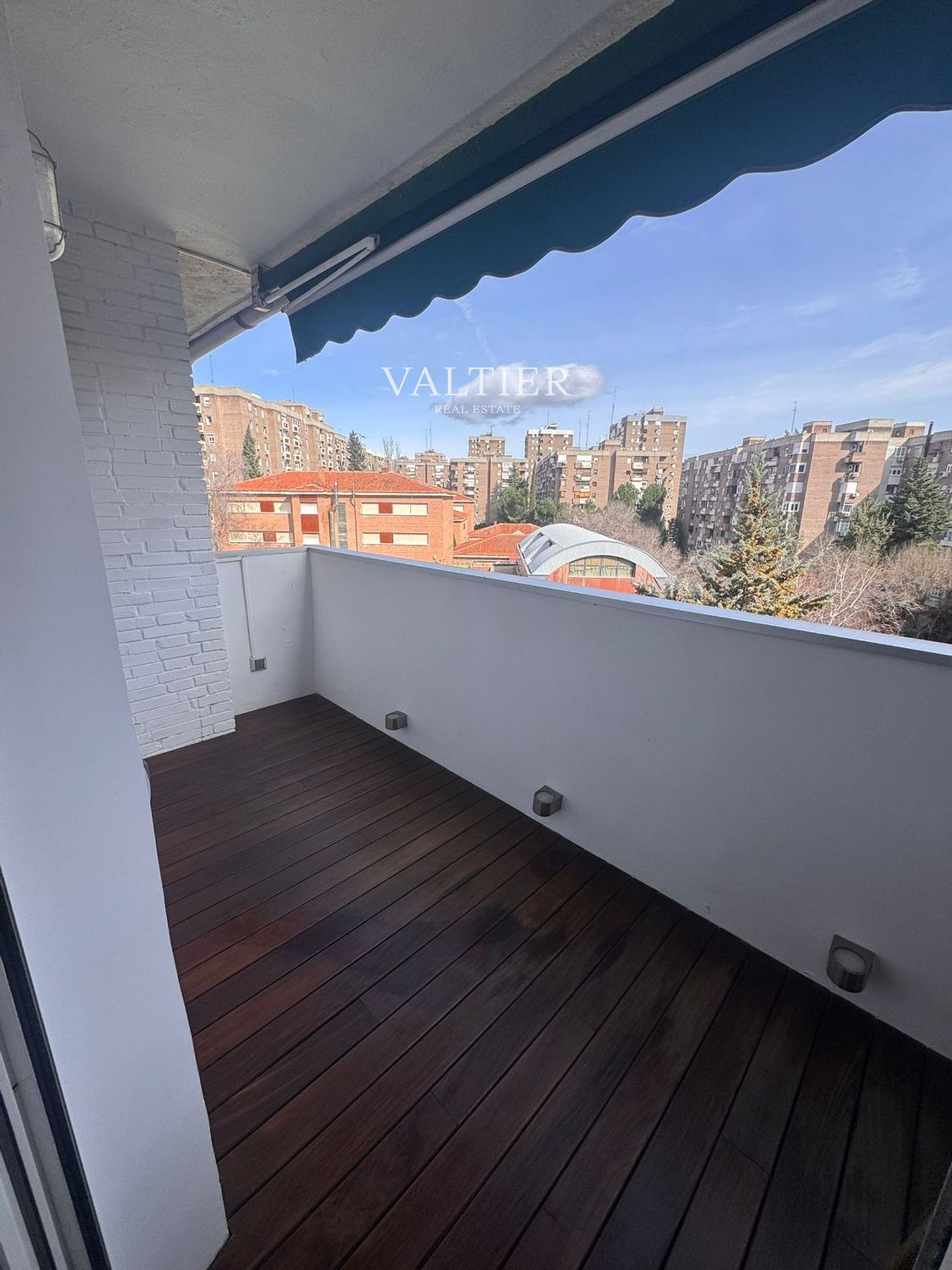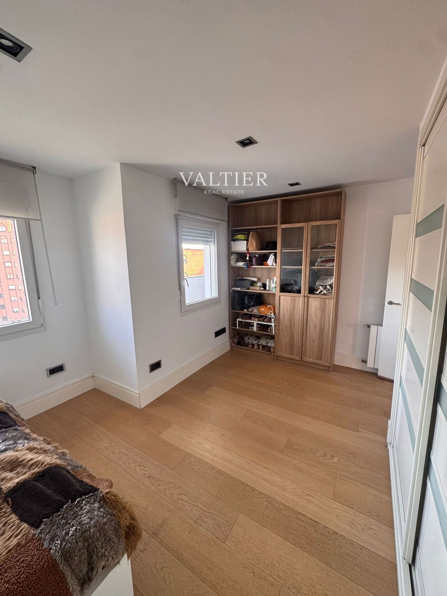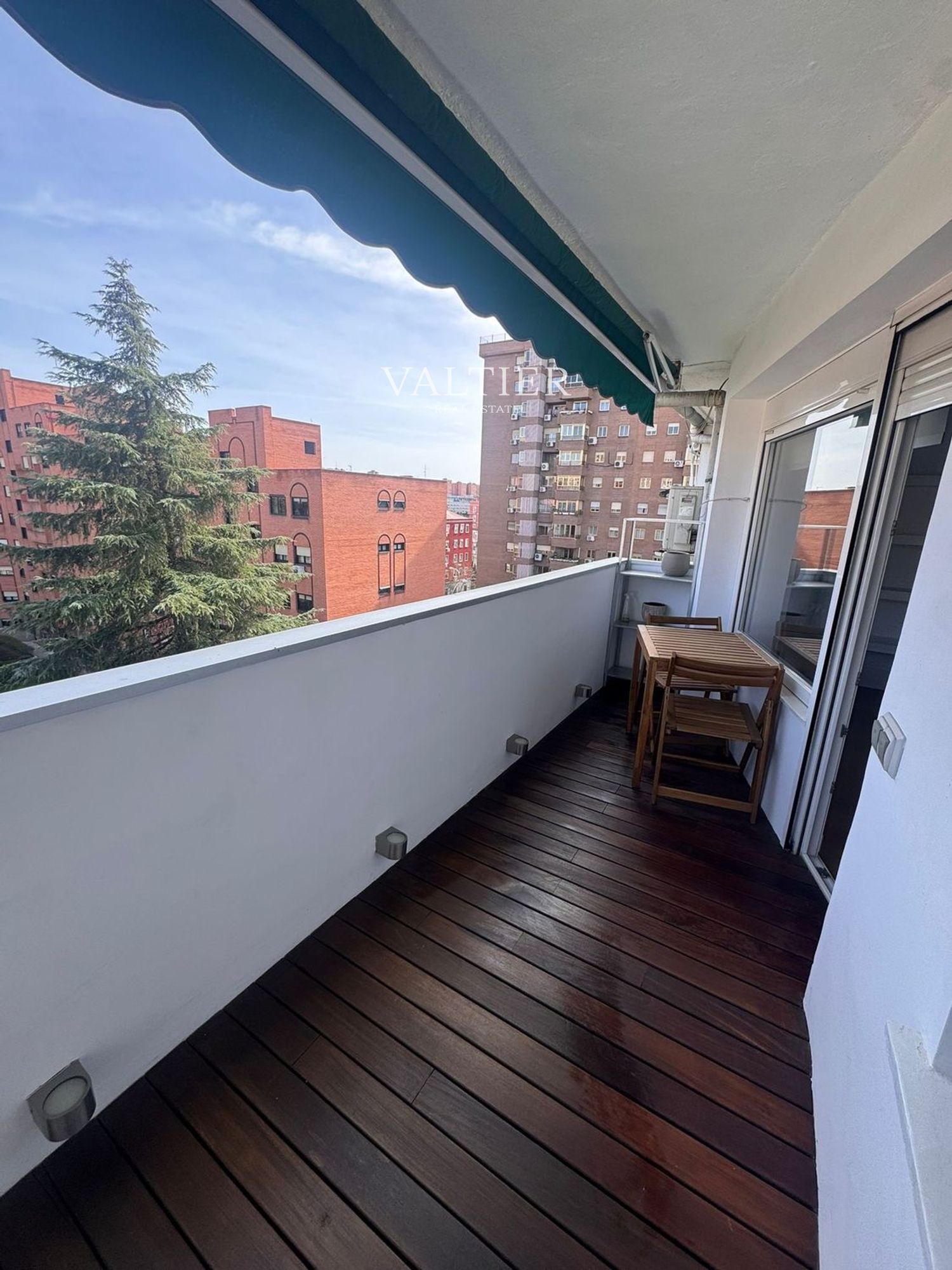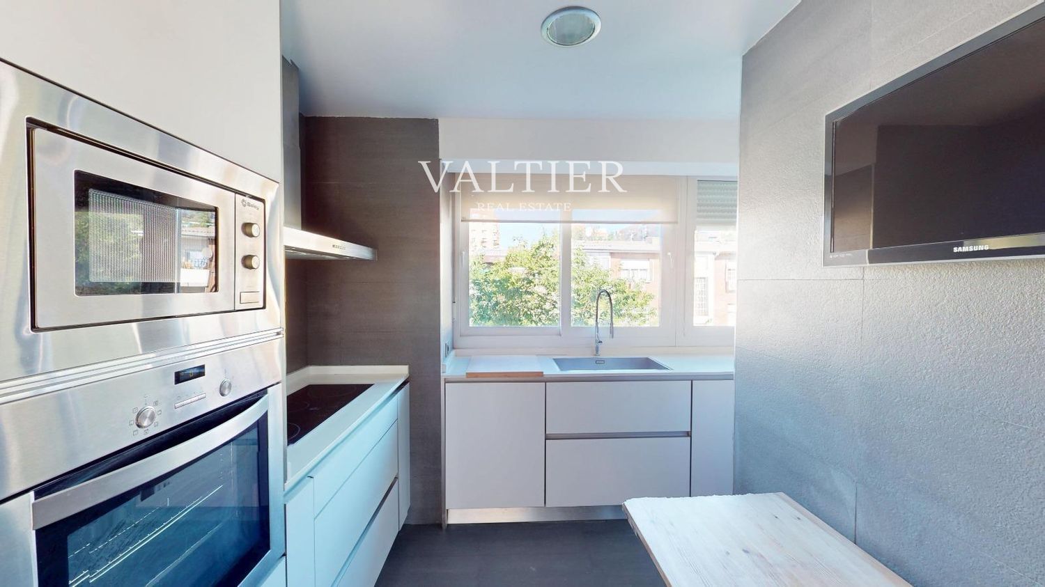 La vivienda se alquila semiamueblada: el segundo dormitorio y la terraza están equipados, mientras que el salón y el dormitorio principal se entregan sin amueblar. Cuenta con acabados de calidad y armarios empotrados.