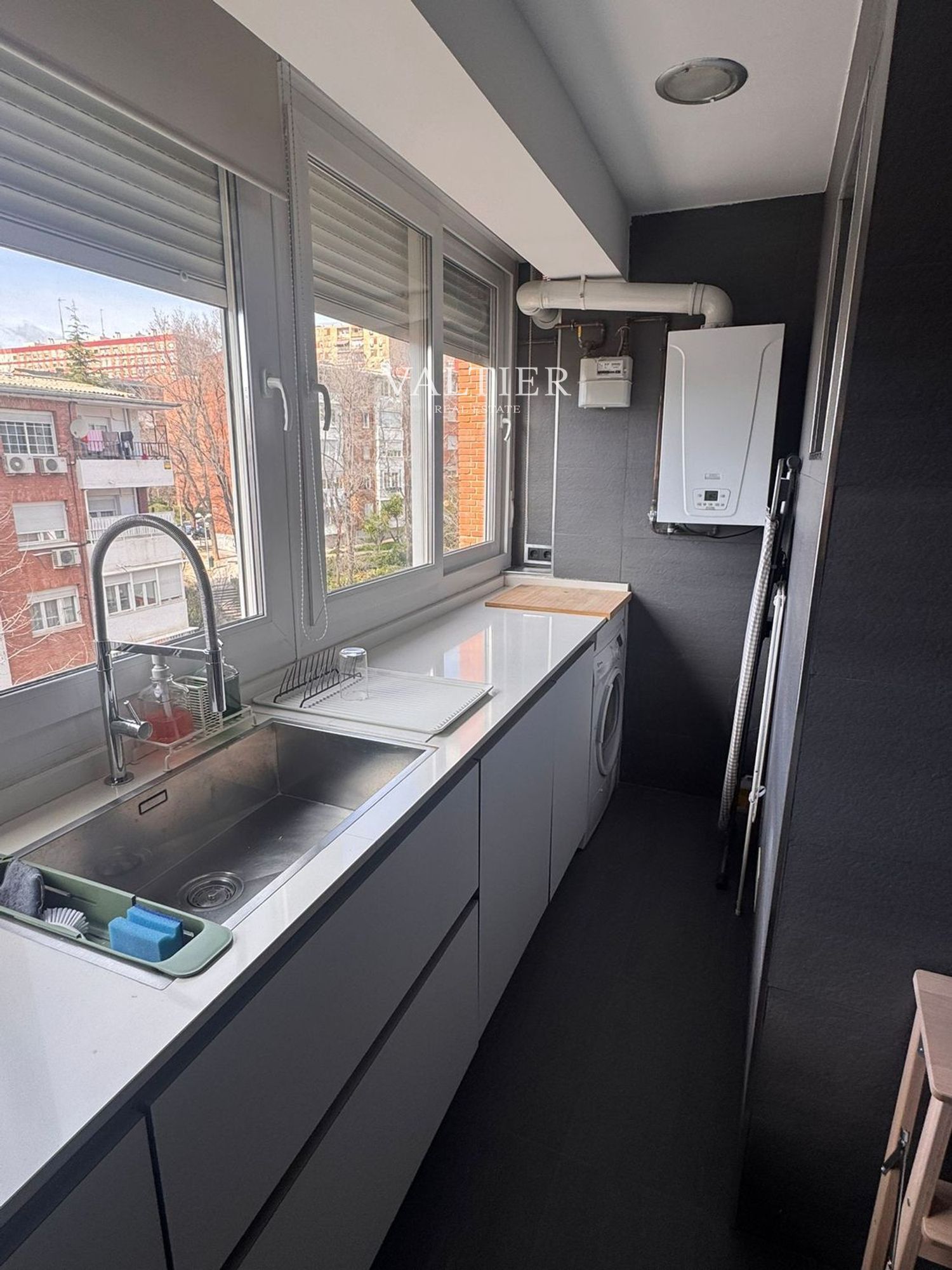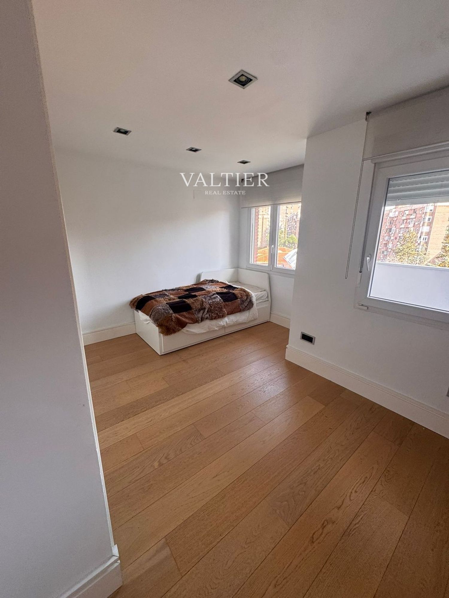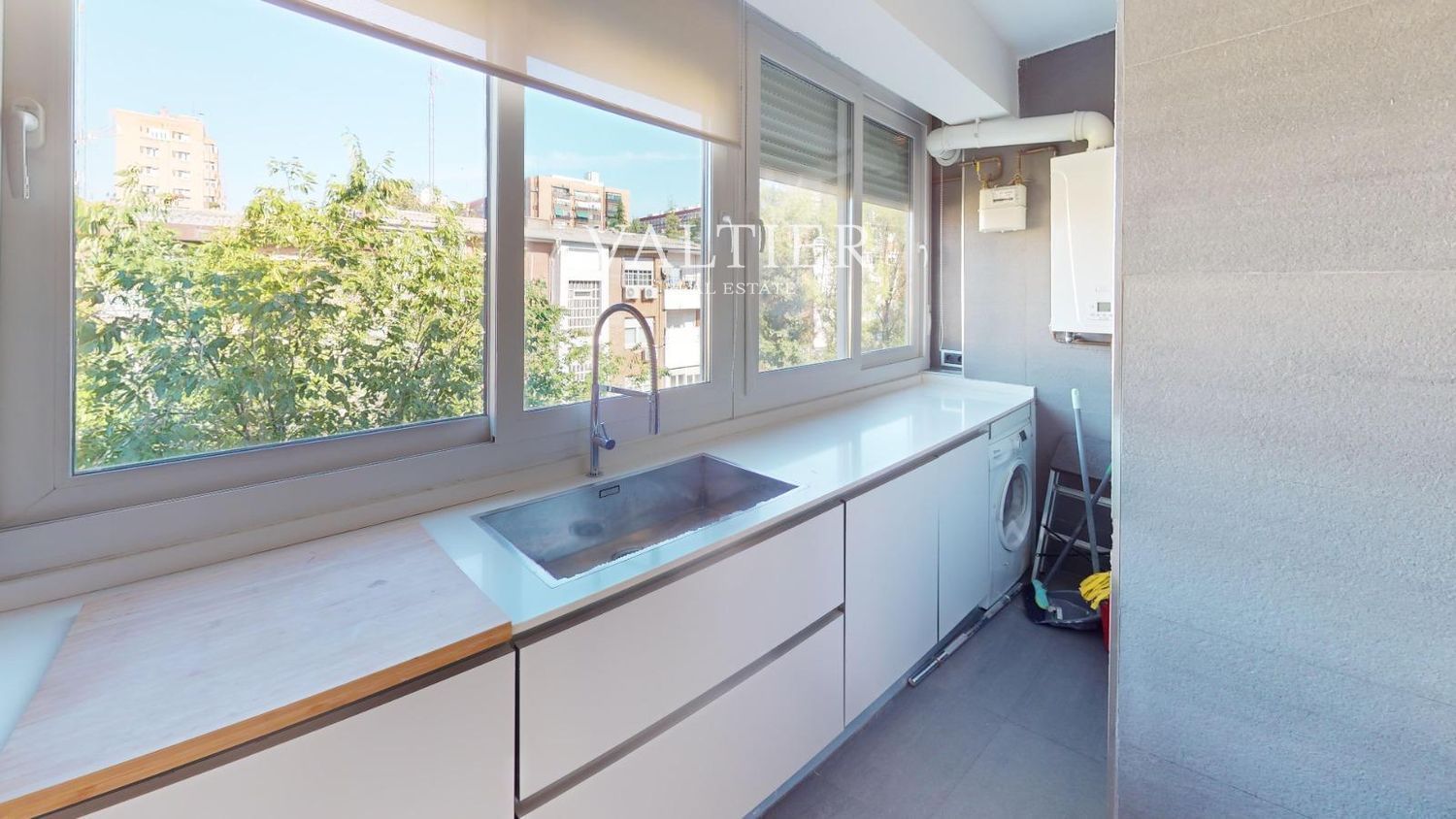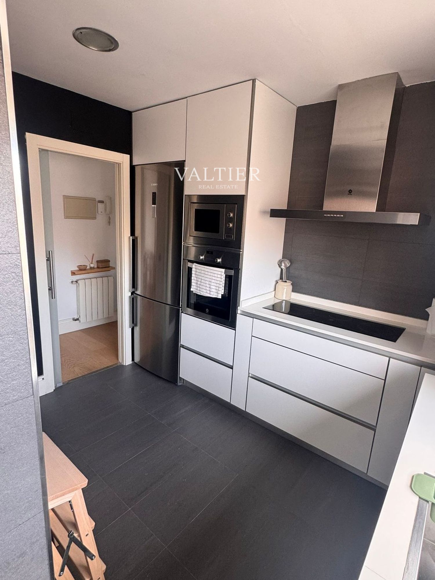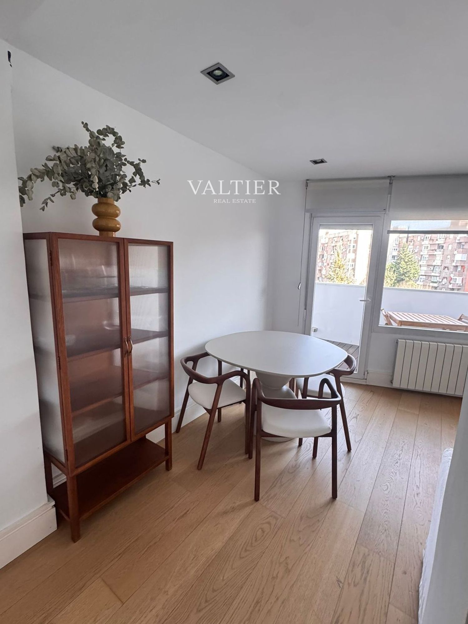 La vivienda se alquila semiamueblada: el segundo dormitorio y la terraza están equipados, mientras que el salón y el dormitorio principal se entregan sin amueblar. Cuenta con acabados de calidad y armarios empotrados.