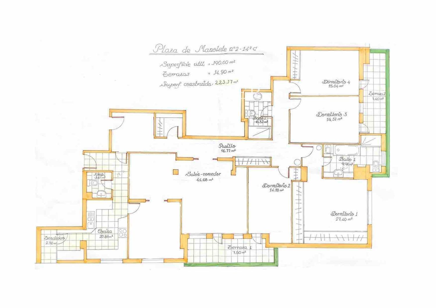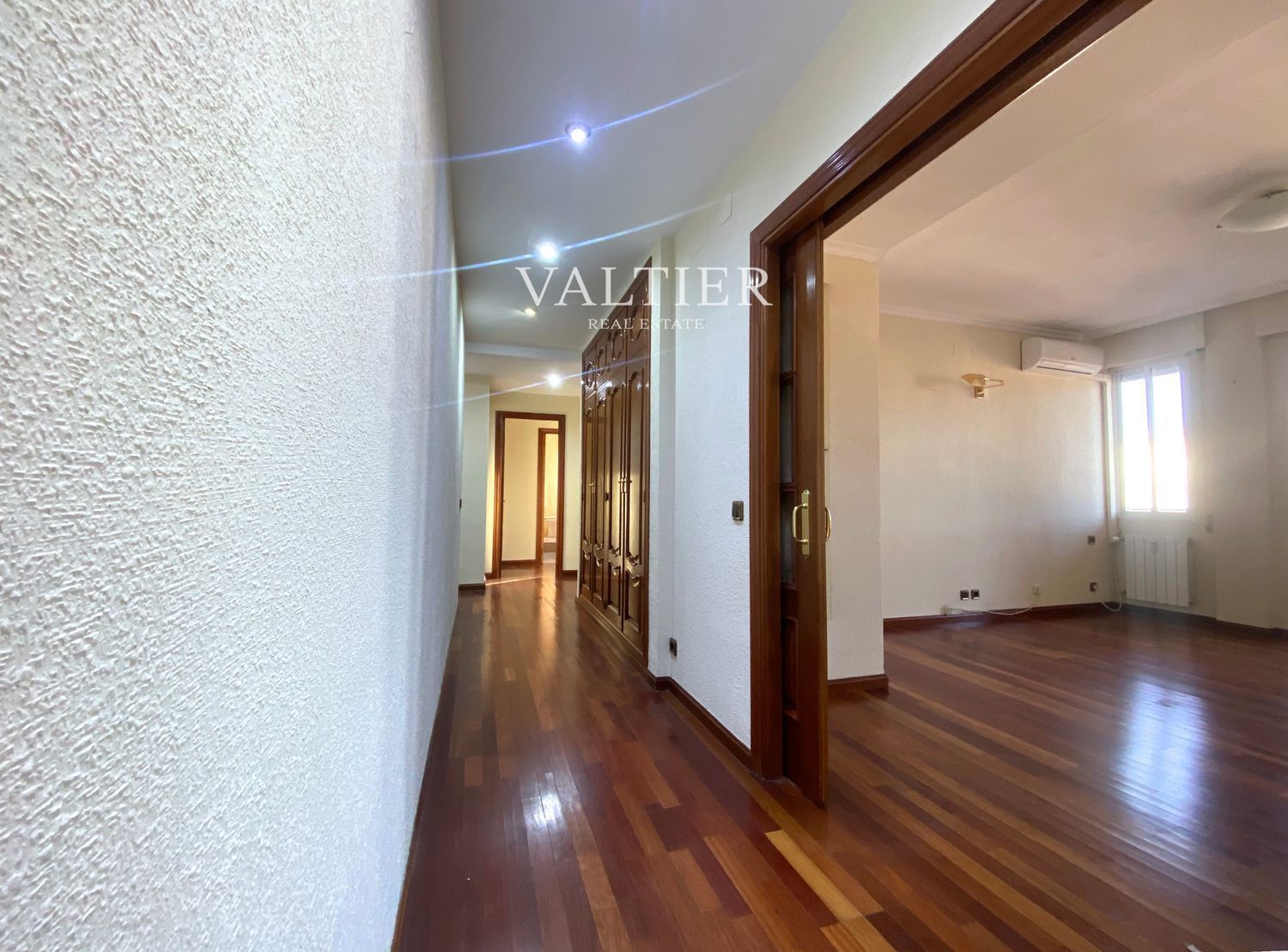 La vivienda dispone de cuatro habitaciones, salón, comedor, dos baños completos + un aseo y dos terrazas con vistas a la sierra y a la Castellana.